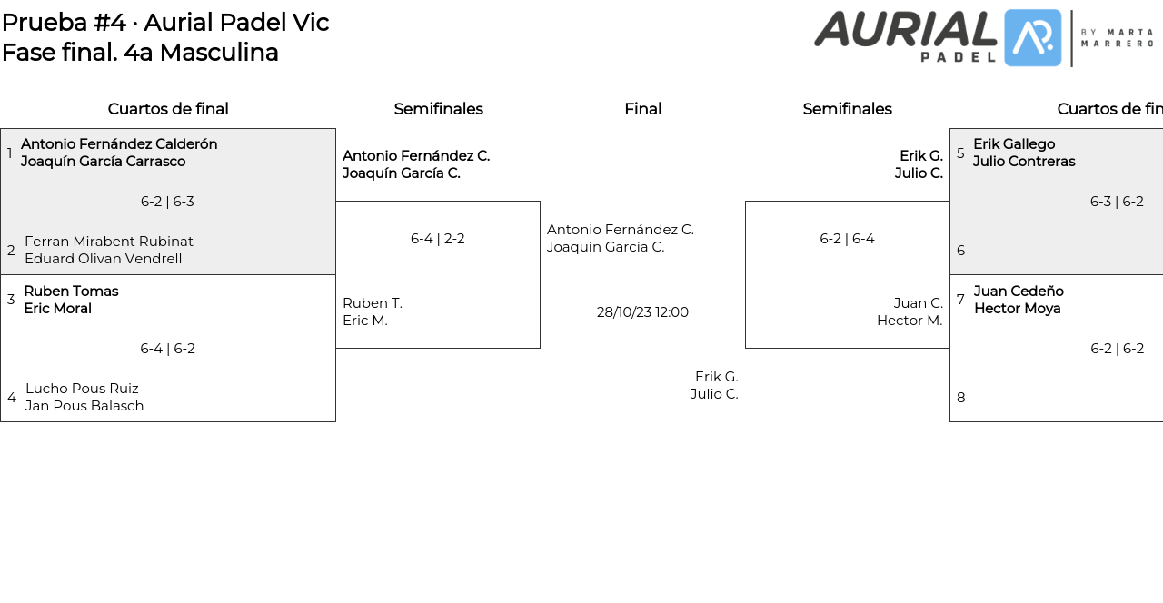 4a Masculina . Desde 27/10/2023 18:00 hasta 28/10/2023 14:00