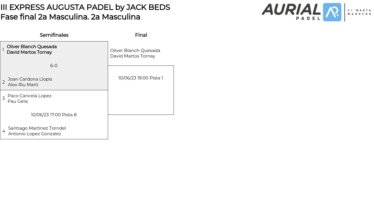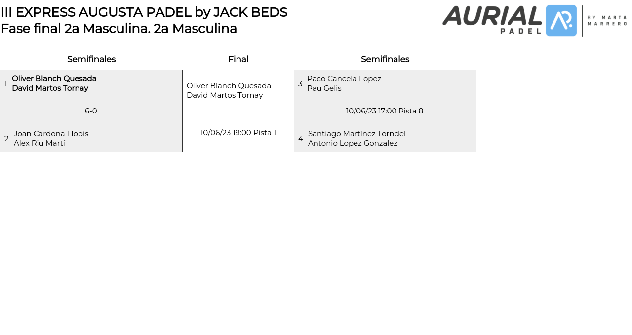 2a Masculina . Desde 10/06/2023 16:00 hasta 10/06/2023 19:00