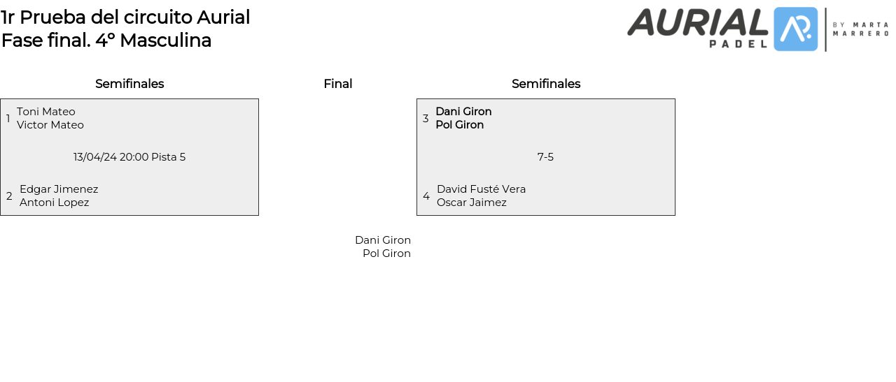 4º Masculina . Desde 13/04/2024 19:00 hasta 13/04/2024 21:00