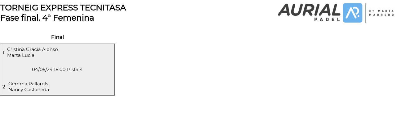 4ª Femenina . Desde 04/05/2024 17:00 hasta 04/05/2024 20:00
