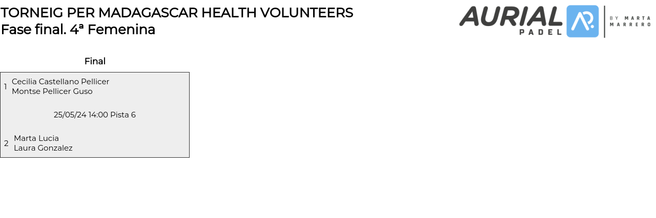 4ª Femenina . Desde 25/05/2024 14:00 hasta 25/05/2024 16:00