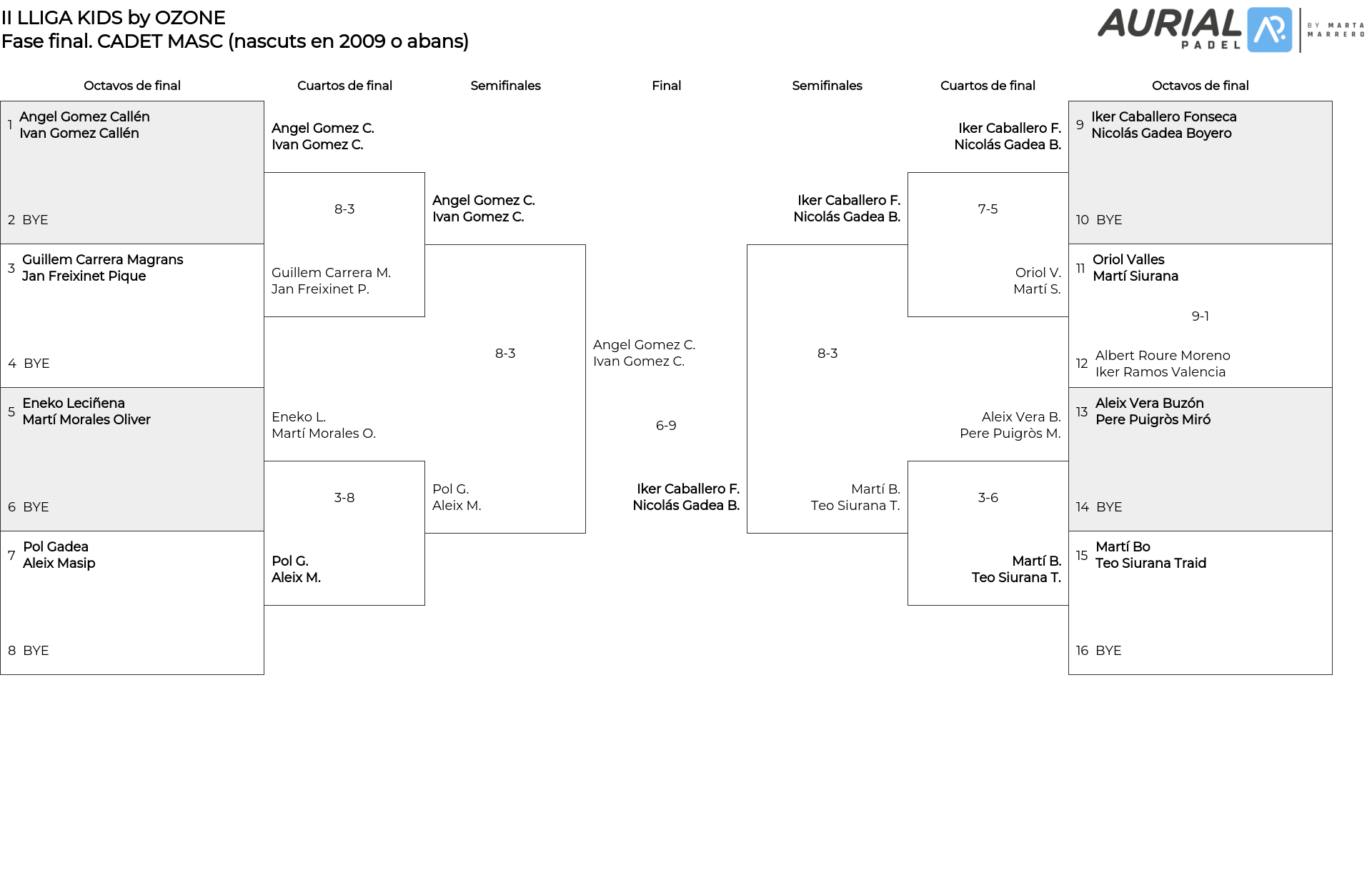 Cuadro de consolación CADET MASC (nascuts en 2009 o abans)