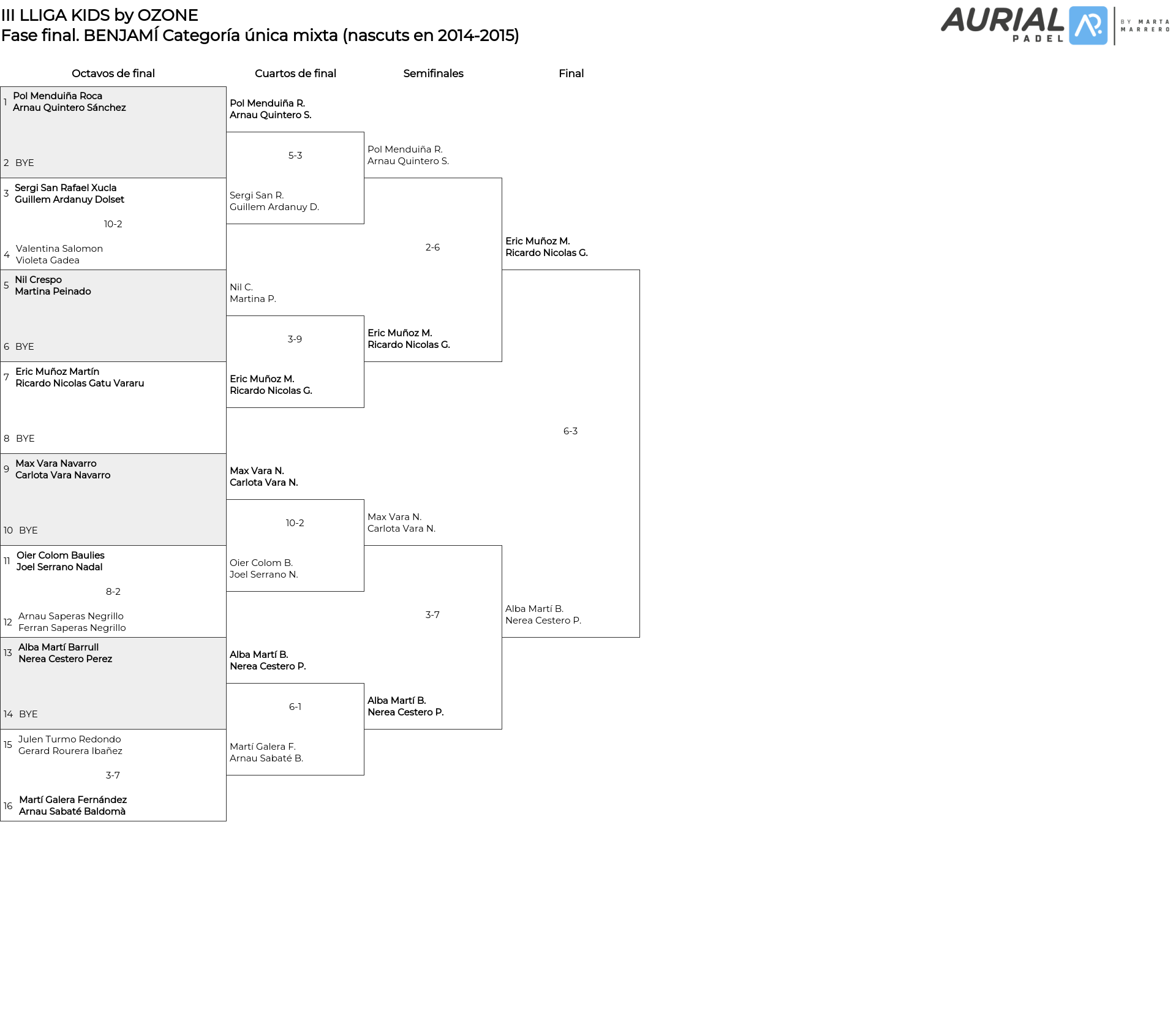 Cuadro de consolación BENJAMÍ Categoría única mixta (nascuts en 2014-2015)