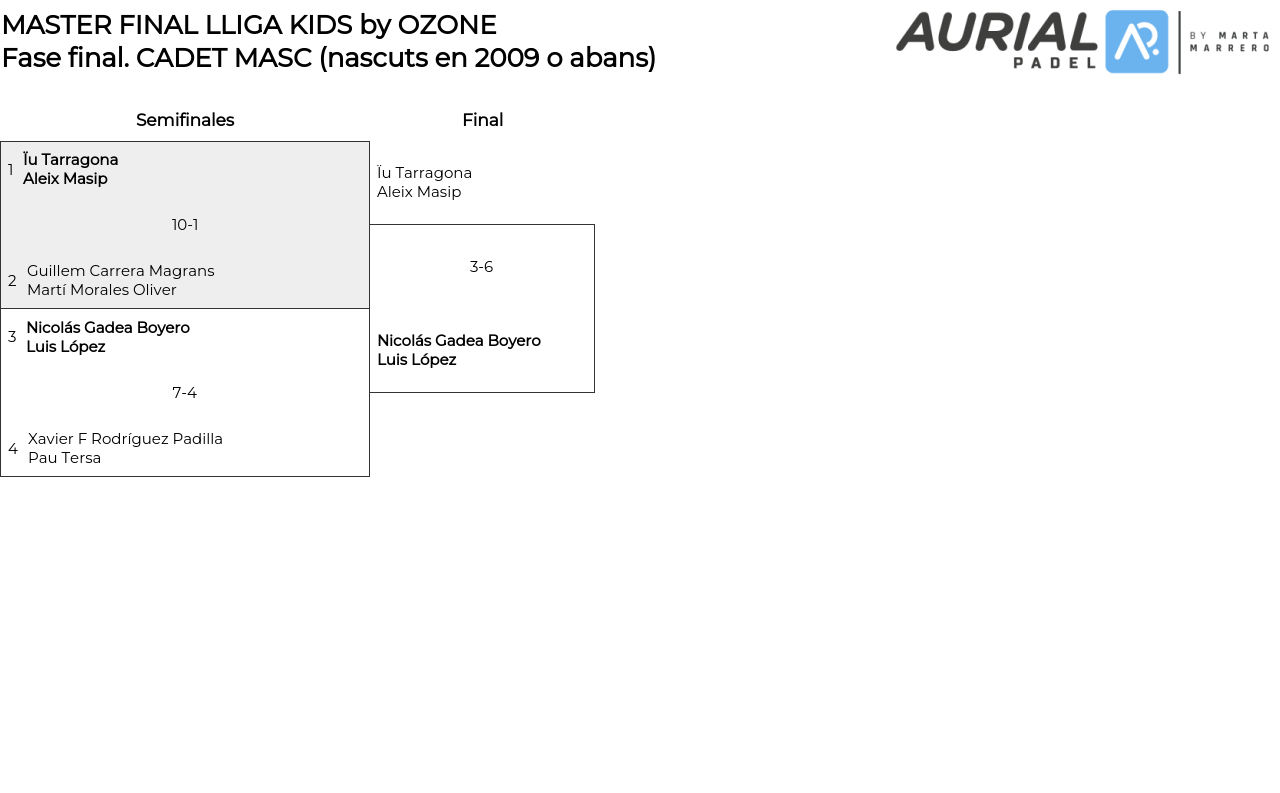 Cuadro principal CADET MASC (nascuts en 2009 o abans)