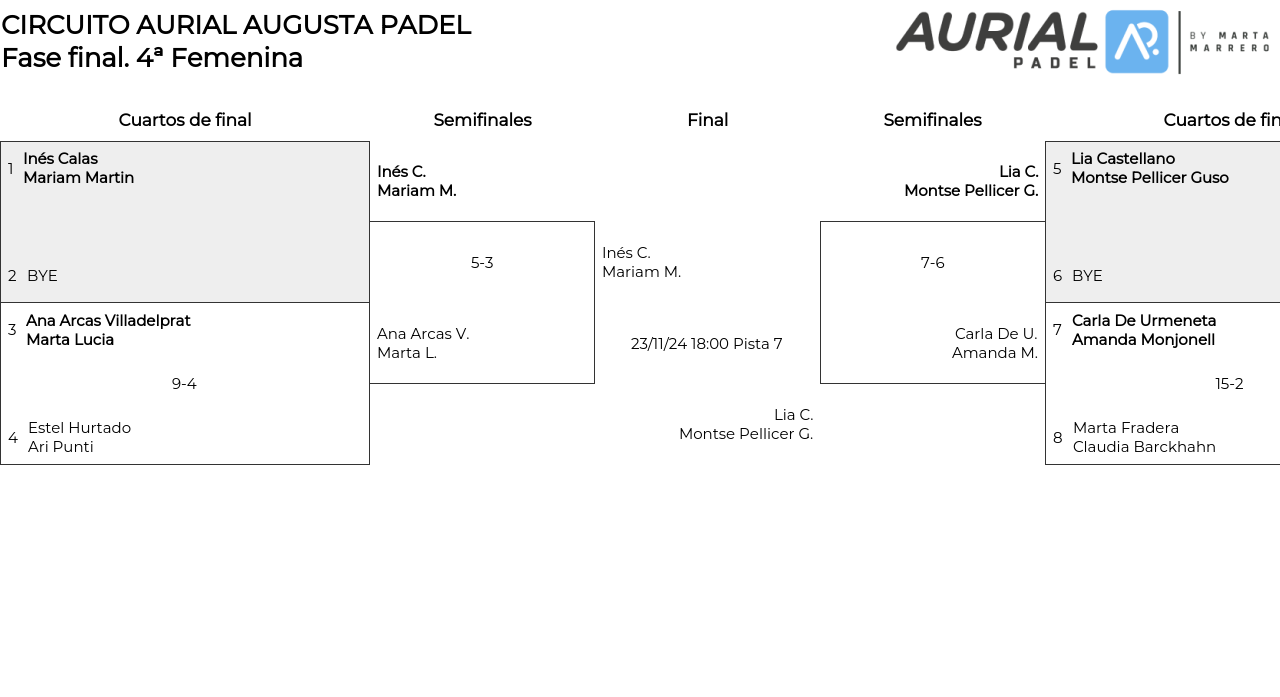 4ª Femenina . Desde 23/11/2024 16:00 hasta 23/11/2024 19:30
