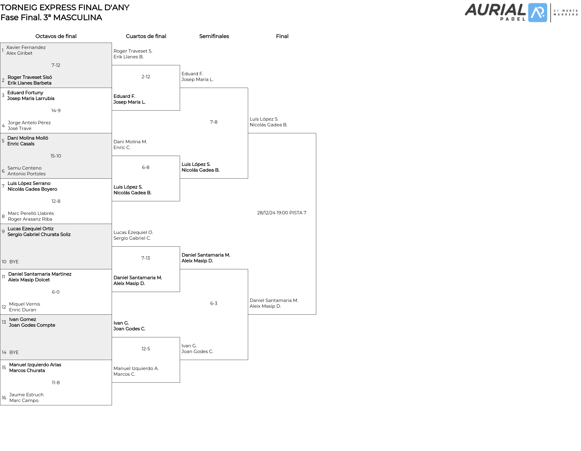 3ª MASCULINA . Desde 28/12/2024 16:00 hasta 28/12/2024 20:00