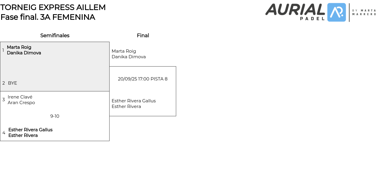 3A FEMENINA . Desde 20/09/2025 15:30 hasta 20/09/2025 19:15